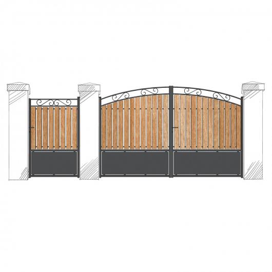 Portail livré avec les accessoires: verrou / serrure / poignée / gonds / sabot central / crapaudine